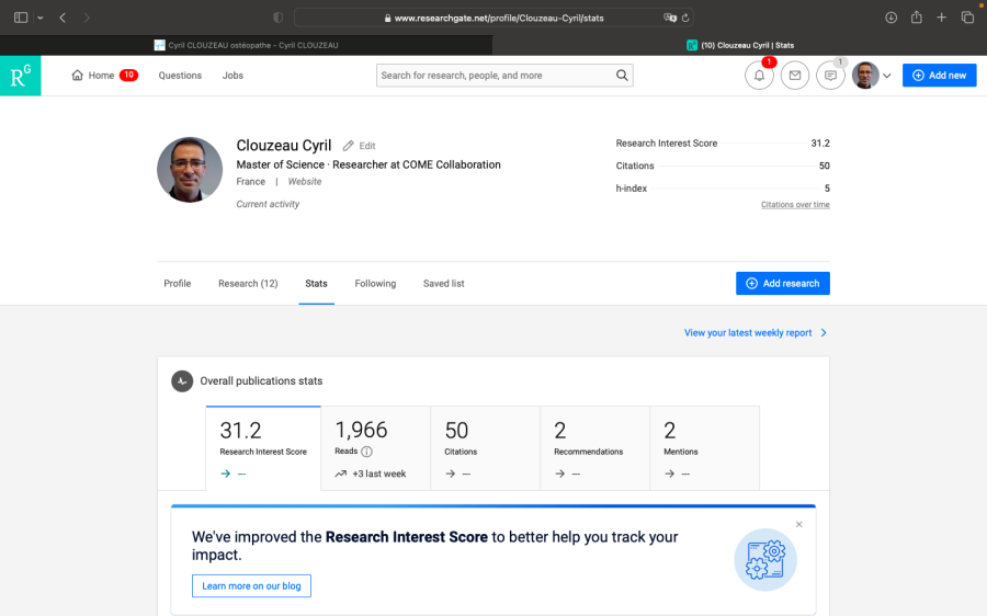 Combien d'articles publiés, dans quelles révues, avec des scores d'intérêt dont voici quelques données caractéristiques selon des sites internet répertoriant les activités de recherche